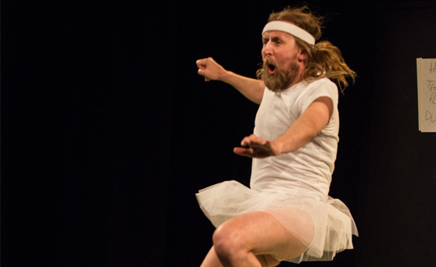 We explore the relationship between Wood and his older brother, who coached him at tennis. Snatches of tennis commentary, pieces of 80’s music and sketches of a little Wood holding hands with his older brother projected on to the wall. It’s high on audience participation using people to act out pivotal moments from playing umpire, to using a toilet plunger to recreate the sound of the ball bouncing. Wood himself being a giant ball prancing across the stage in underpants and a tutu, my favourite seeing him make the chalk lines of the court with a large tub of salt tied to his head. Often you just don’t know what’s going to happen next so if you’re not a fan of audience participation this might not be for you. Sometimes odd and slightly surreal Wood manages to keep it together, overall an entertaining hour spent in his company. A very entertaining Four Stars.