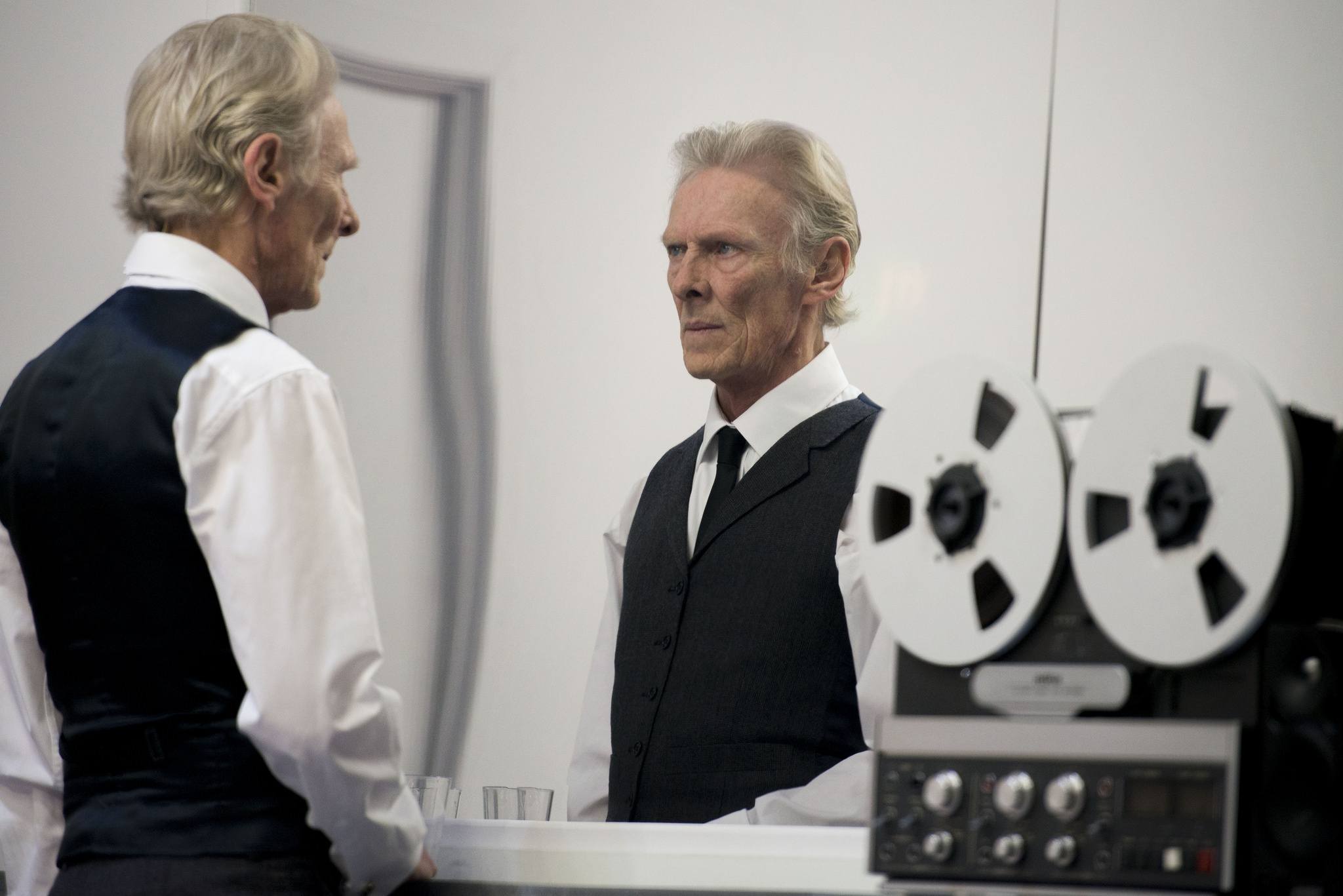 With the flick of a light the reflective glass box on the main stage of the Citizens Theatre has become a room. The audience have become voyeurs. Journalist Citta Sereny (Blythe Duff) is interviewing war criminal Franz Stangl (Cliff Burnett) about his role at the Second World War extermination camp, Treblinka. As Sereny calmly chips away at her subject, we gain unparalleled insight into the mind of a monster. Descriptions of early beatings from his abusive father: ‘stop it!’ his mother cried, ‘you’re getting blood all over my clean walls,’ precede depictions of his evil descent through the Nazi ranks, from police officer to death camp Commandant. Stangl’s stoic stance that his role was purely administrative can only crumble as other characters, including his wife (Molly Innes) and a host of former colleagues played by Ali Craig, deepen our understanding of the layers of lies and self-denial that facilitated the mass murder of thousands of Jews. And from that horror, Director Gareth Nicholls has created a powerful and strangely beautiful piece of theatre; from the crisp costumes to the elegant shapes Blythe Duff makes when sitting half towards the audience, half towards the proceedings inside that institutional-grey room.