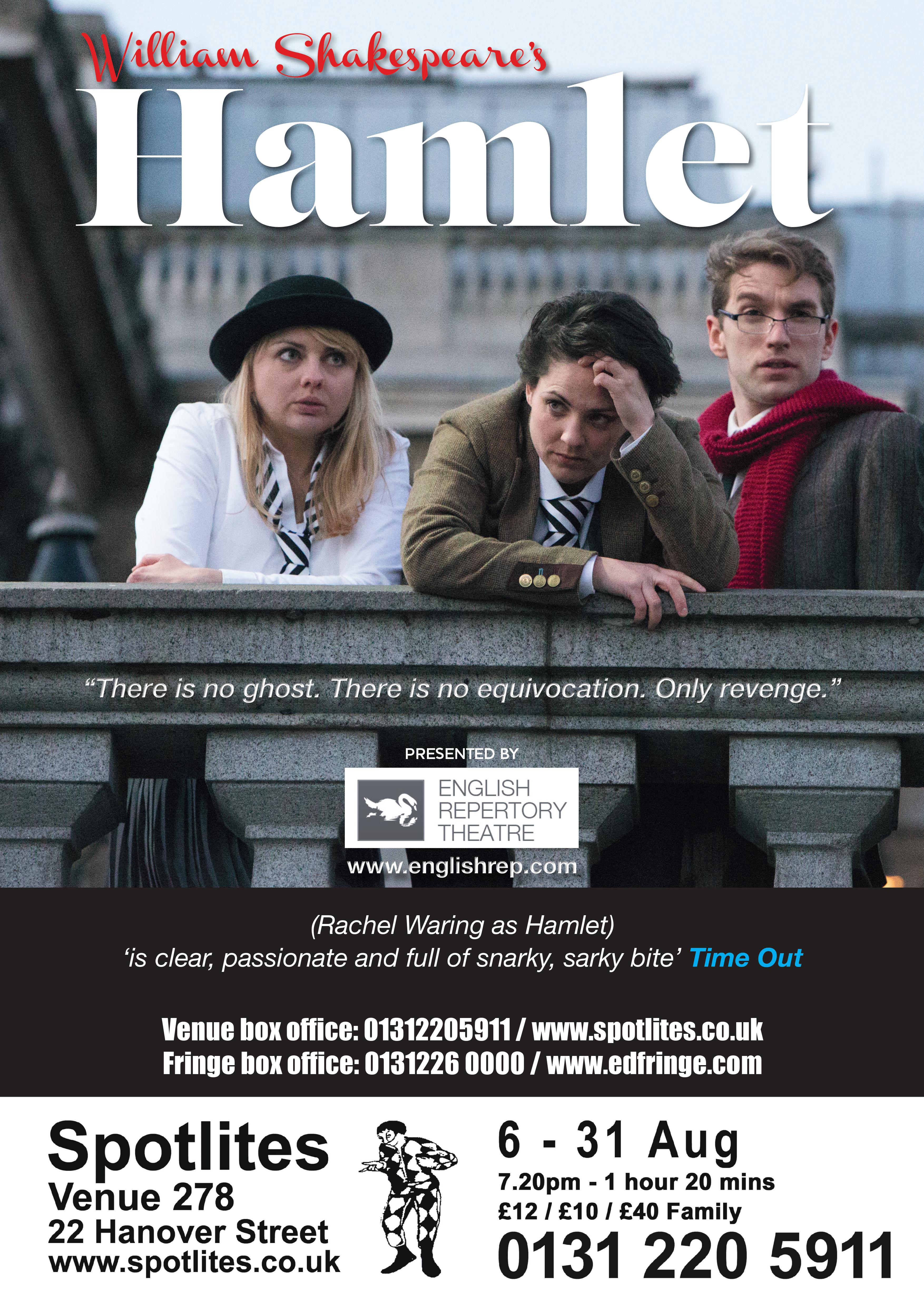 There is no Ghost. There is no Equivocation. Only Revenge. Hamlet isn’t happy. A letter from his dead father explains that Uncle Claudius bumped him off and to rub salt into the wound he’s married Hamlet’s Mum Gertrude. This injustice will not stand as the murderous teenager sets out on a roaring rampage of revenge. Hot-footing it from their hugely acclaimed London and Oxford tour of Hamlet, English Repertory Theatre bring their 80 minute action packed extravaganza starring a woman as Hamlet to the festival this year.