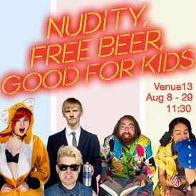 A daily challenge to realise the best marketing scheme on the Fringe. Join us in competitive capitalist victory or watch us lose our shirts…guaranteed beer, and kids will love it. Title is a promise. We’ll always be tasteful…or tasty…maybe both?
