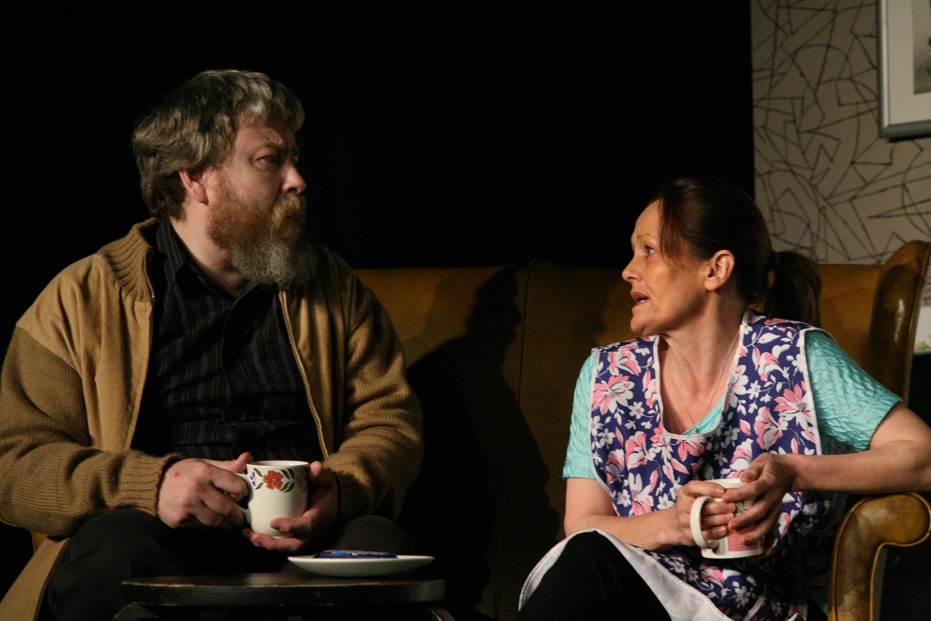 Aggie (Maureen Carr) is terminally ill but she’s not suffering this without the irony splattered patter that has been honed to side-splitting accuracy from her lifetime of living with husband Jim (George Docherty), the fixer – the fixer of hoovers, ‘That only took thirty minutes.’ Aggie complains that it has been more like thirty years since she saw that hoover and Jim with lightning speed retorts, ‘Aye, but it took thirty uninterrupted minutes.’ Not wishing to spoil the priceless banter that occurs between this couple who have found themselves let down hugely by their Health, hope and happiness medical insurance package that doesn’t cover cancer, I cannot recommend enough an appointment with, ‘ Heart of gold, mouth of filth, perfect Govan lady’ and Jim, her wannabe surgeon husband.