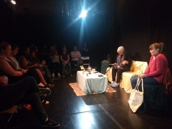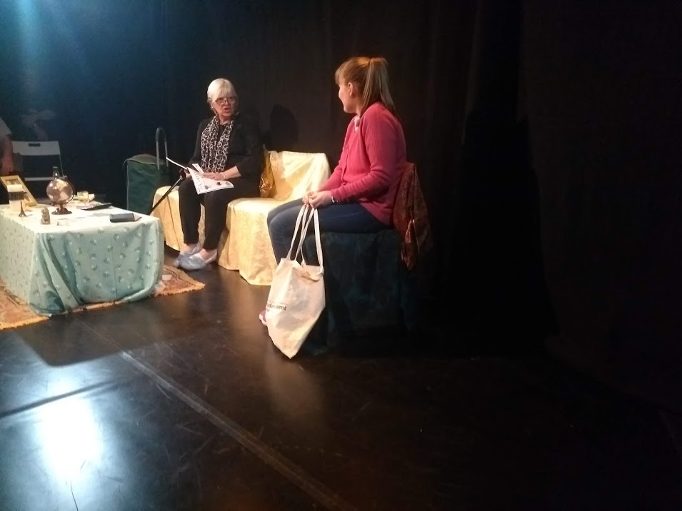 But this is 2018, & what she has for us this time round is a delightful fly-on-the-wall window into a young persons visitor scheme to counteract old-age loneliness. Meet 21-year old Rosie (Vicki) & cantankerous, sarcastic, Irish Coffee loving 78-year old, Vera, cannily played by Janet Garner. The irony is this – while Rosie is a bit, well, dull, Vera has lived life to the fullest, becoming a dancer in Paris at the start of the sixties when she had been 21. Alas, the passage of a half-century had stripped her of friends & family, arthiritis is wracking her body, & all that remains to comfort her are the ‘the memories of when she was brave.’