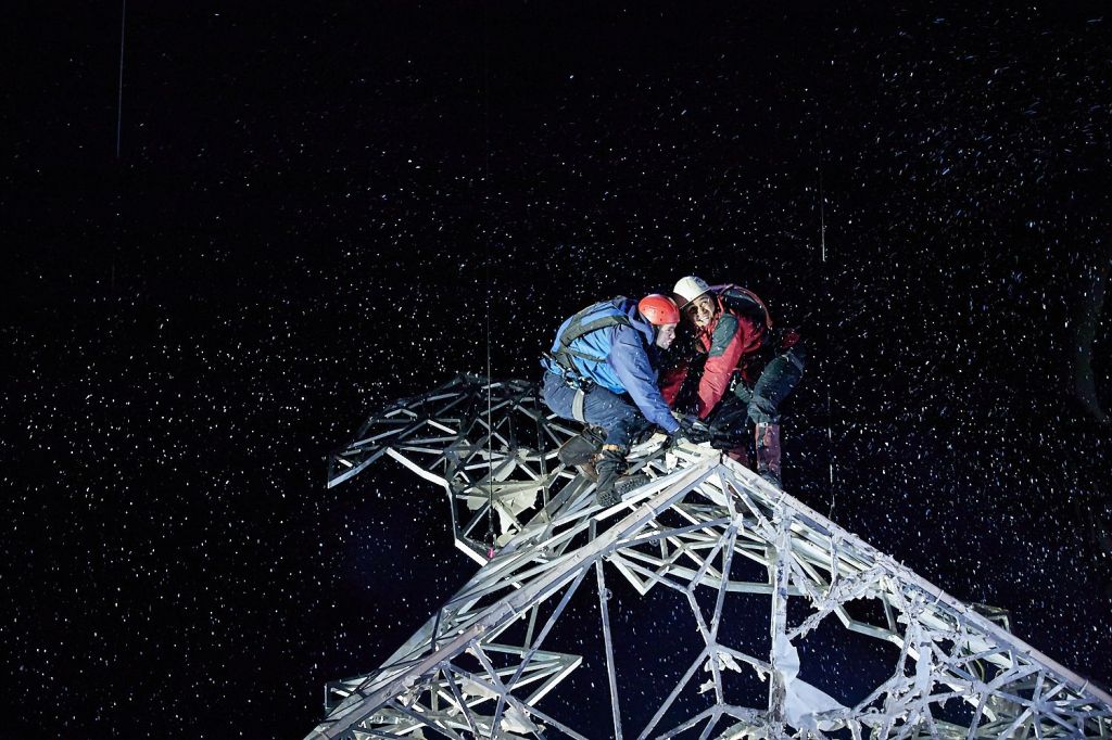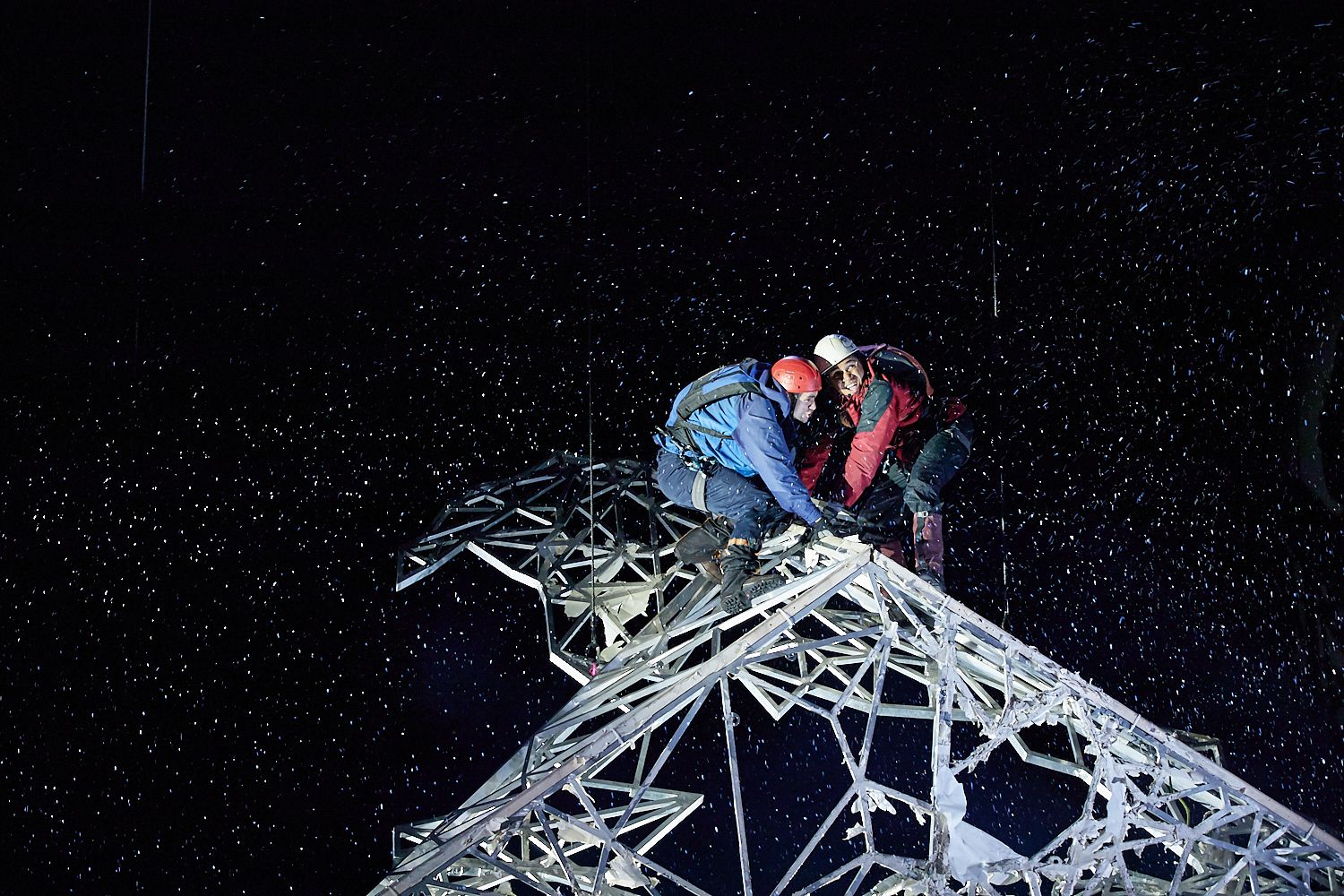Touching the Void is a ‘West End Smash’ & it does have a certain populist appeal. The production offers extremely simple storytelling, tho’ done professionally well, & with wonderful effects. It fundamentally tells the story of the unattempted beforehand climb of the 6,344-metre west face of the Siula Grande in the Peruvian Andes by two English climbers. The play opens at a pub wake for one of the climbers, Joe Simpson, whose sister Sarah – played by the actorial the star of the show, Fiona Hampton- is searching for answers & truths about her brother, who doesn’t feel dead to her.