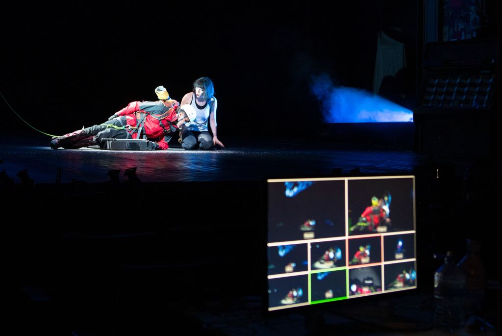 Indeed, Joe soon turns up as a living memory as the story of his & co-climber SimonYates’ South American adventure unfolds throughout the rest of the play. As the tale progressess, we are given glimpses of the cool spartan elitism that climbers have crown’d their days & egos with. Having watch’d The Dawn Wall film I now have a basic familiarity with the passion & drive of these feral intrepids, & while that film was exhilarating & often terrifying, attempting to recreate the drama of such a purely natural phenomena as ‘ape-climbs-rock’ is ultimately, for me, dissatisfying as theatrical spectacle. It look’d amazing, for sure, & there were some lovely dialogues & vignettes; but as an old skool kinda guy the Dionysian stage is meant for a different kind of drama than dangling on a rope.