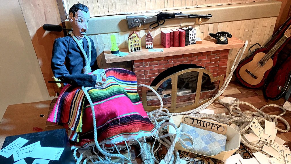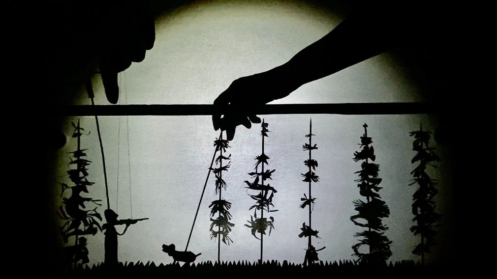 This special puppet and shadow performance had to immediately shed the skin from our character Django. His name was inspired and used to act as the protagonist, and as hero, so accompanying his puppet were a dog, a strange looking vulture and other gentle things. The mentioned pace was from another time looking straight at a puppet world of animation.