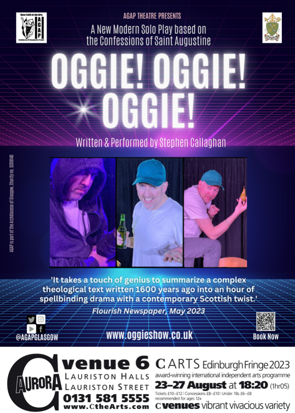 This year, I’m performing a new solo show. Oggie! Oggie! Oggie! is a modern, energetic twist on The Confessions of Saint Augustine (“Oggie” for short!), charting his rollercoaster journey from hedonistic wild boy to one of the most famous inspirational figures in Christian history.