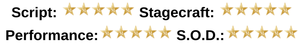 With ounces of show stopping, meaning full and endearing intensity the story lit up the great little sized stage. Was there Shakespearian wit, coming out in some of its more ironic moments, moments of pivotal plot making? A man for whom so much happened, a man who we saw whipped into shape by a Hughie Shepherd-Cross willing to try anything to save face. Making the most of this play was easy and I felt an audience truly engaged.