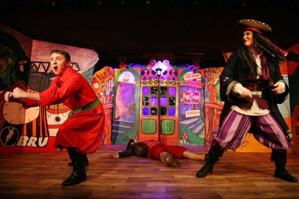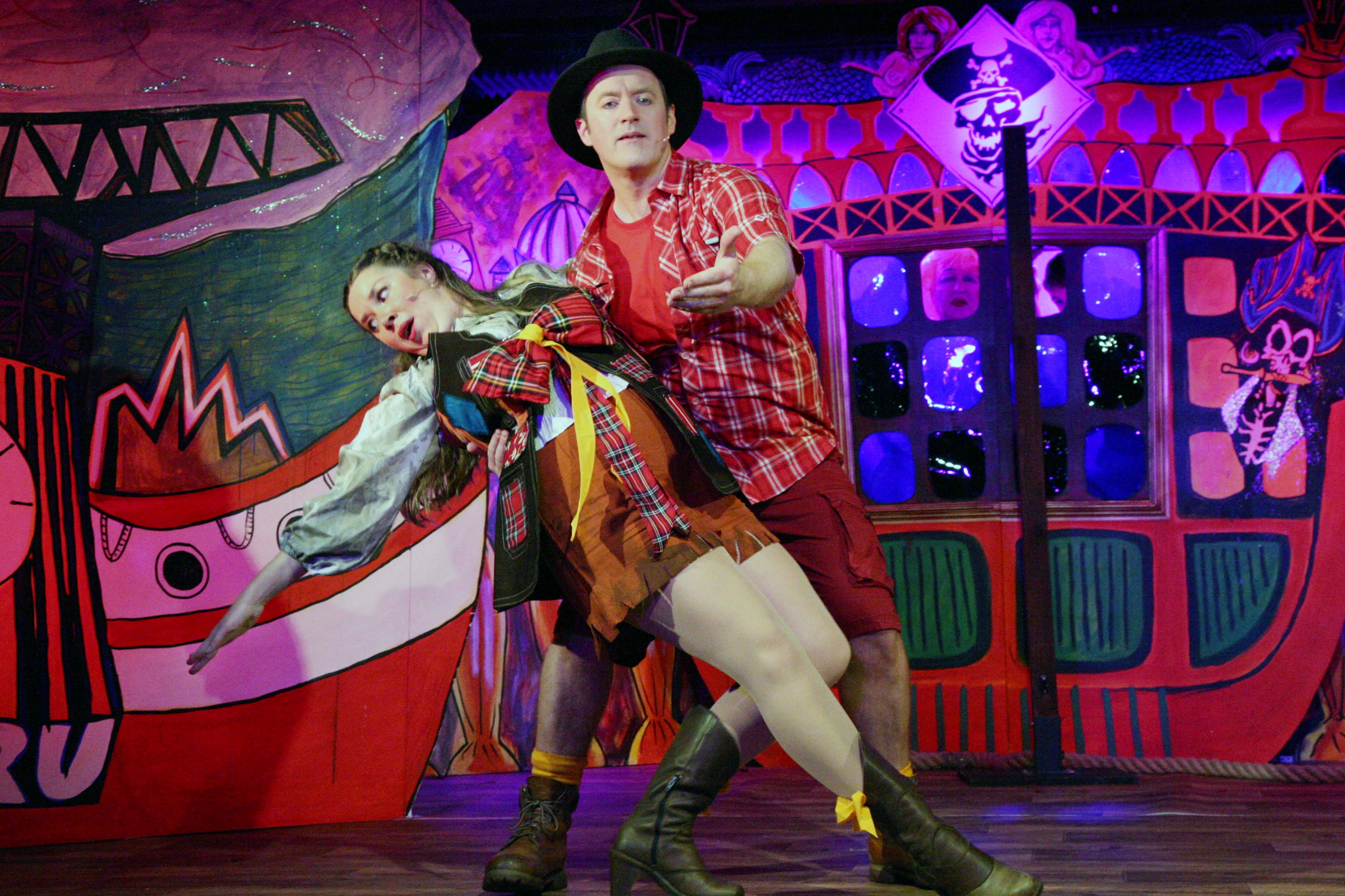 The fast moving plot found the naïve young Whittington under the sway of his evil landlord, Skinflint (John Kielty), head full of London tales that never came true, despite the voice in his head telling him to turn again for he would be Mayor of London. And when he was chucked out of his digs, and found himself in a tavern full of drunken sailors, his thoughts turned to heading back up north where his poor old grandmother sat all alone in her lonely flat. When pirate captain Cut-Thrapple offered him and his cat, Fleabag, a passage all the way up to Glasgow –– it seemed like the answer to his prayers.