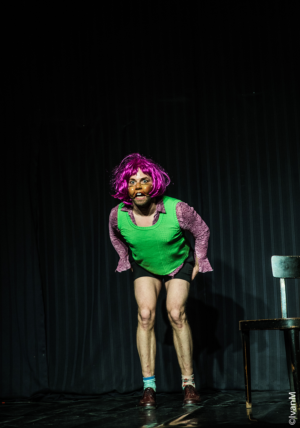is pure red-nose clown. A solo virtuosity which tells a folk tale in a revisited version. In this piece, the music is the movement of the actor, though he plays several instruments himself, to tell the age-old story of star-crossed lovers who wring a happy ending out of a cruel destiny. With Stefan Ostojić.