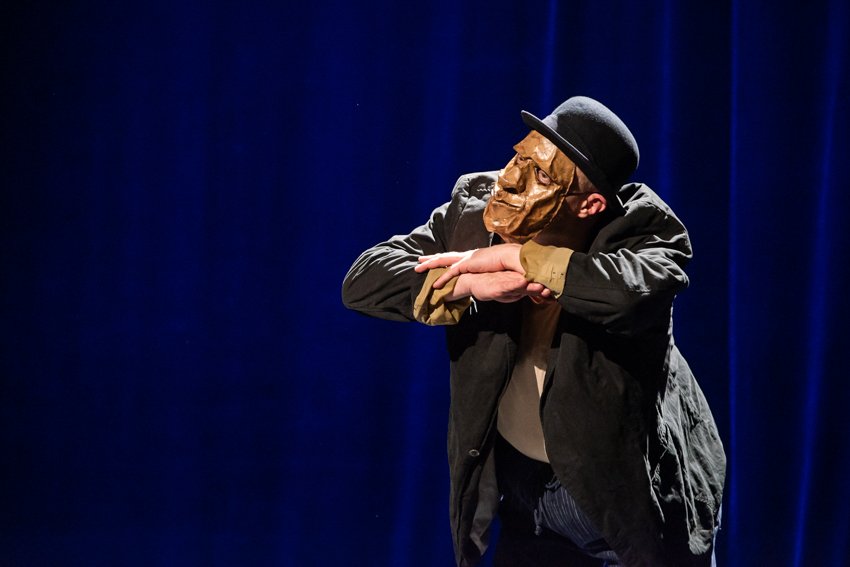 “Absolutely Reliable!” is a solo mask show, in which George, a middle aged, middle class and middle manager, desperately longs for love, attention, confirmation and proximity by his beloved girlfriend Josephine. He is just not prepared to deal with it when it materializes. He realizes that he has to invest, commit and display himself with his own emotions, and that’s not what he is remotely capable of. So, his demons take over and throw him into a roller-coaster of love, desire, lust, fear, loss and death. It’s a mirror to modern day’s masculinity.